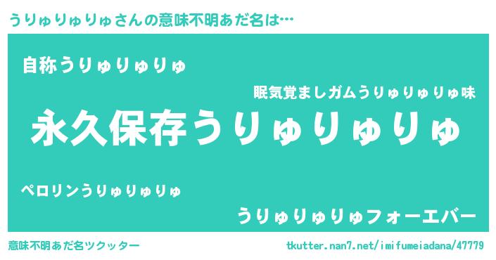| 女子向けラノベタイトル風あだ名 | 『うりゅりゅりゅの契約王妃』 |