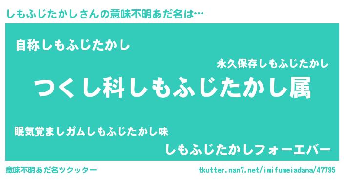 | ヘコむあだ名 | 『酢こんぶ』『しもふじたかし(笑)』 |