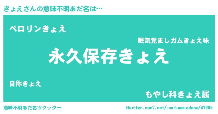 | ヘコむあだ名 | 『きょえ(小並感)』『きょもー』 |