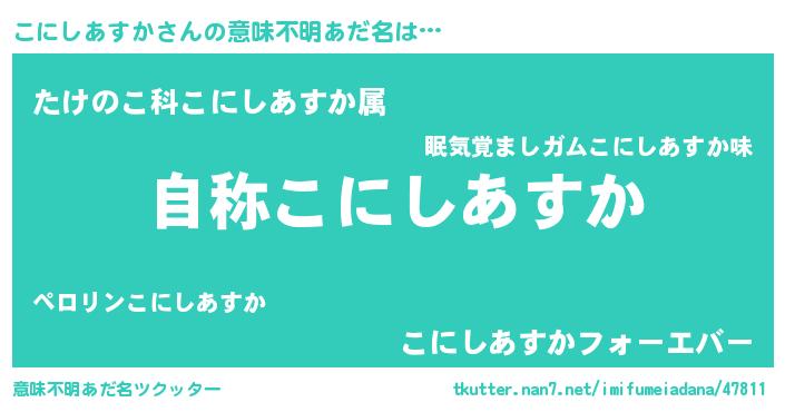 | 女子向けラノベタイトル風あだ名 | 『こにしあすかストレイドッグス』 |