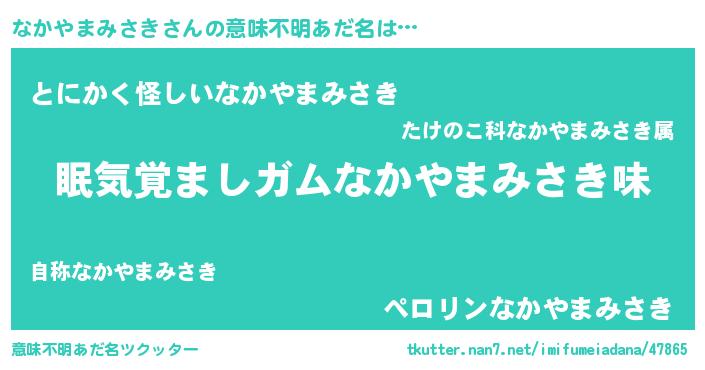 | 男性向けラノベタイトル風あだ名 | 『なかやまみさきに滅ぼされるだけの簡単なお仕事です』 |