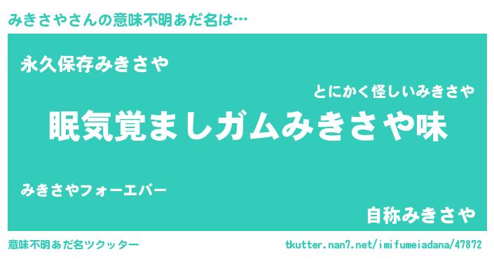 | ヘコむあだ名 | 『みきさや(苦笑)』『みきを』 |