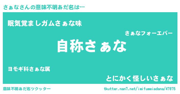 | 男性向けラノベタイトル風あだ名 | 『Re:さぁなから始める異世界生活』 |