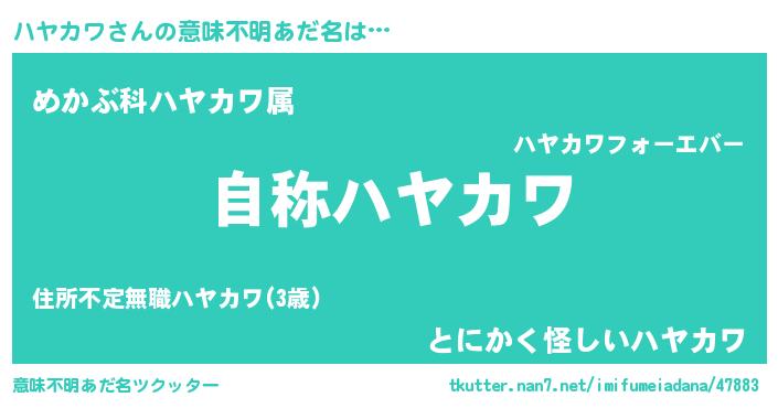 | ヒーロー風カッコイイあだ名 | 『ウルトラ戦士ハヤカワ』『黄金騎士ハヤ』 |