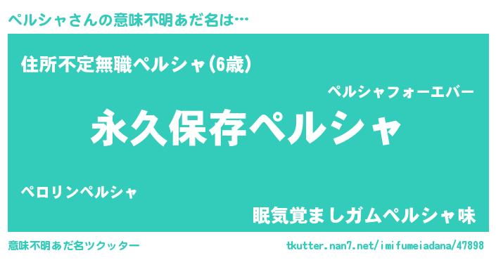 | 胡散臭い通販商品みたいなあだ名 | 『来世でも幸せになれる水素水…その名も「ペルシャ」』 |