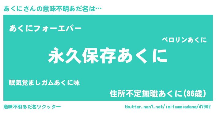 | ヘコむあだ名 | 『あくに(笑)』『牛乳』『あくふぇ~』 |