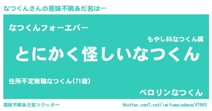 | 欧米人風あだ名 | 『ウサインなつくん』『マイケルなつくん』 |