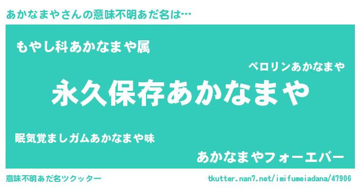 | 男性向けラノベタイトル風あだ名 | 『あかなまやという概念が存在しない退屈な世界 』 |