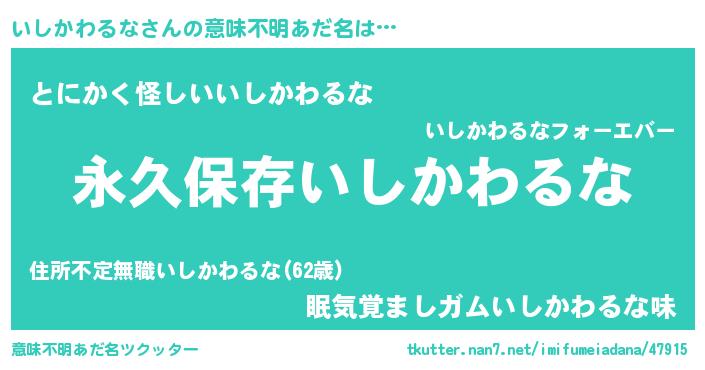 | 胡散臭い通販商品みたいなあだ名 | 『前代未聞の健康食品…その名も「いしかわるな」』 |
