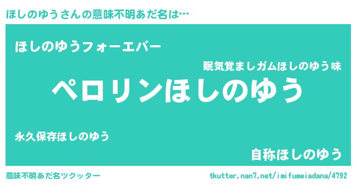 | ファンタジー風あだ名 | 『ホシフェル』『エターナルホシノユウー』 |
