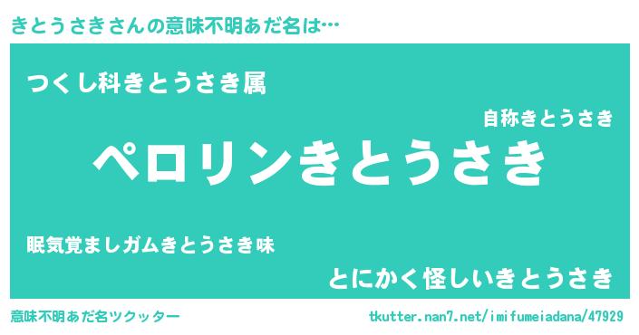 | 男性向けラノベタイトル風あだ名 | 『きとうさきの憂鬱』 |