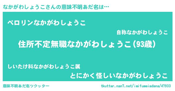 | 女子向けラノベタイトル風あだ名 | 『なかがわしょうこが死なない童話 林檎のなかがわしょうこの診療簿』 |