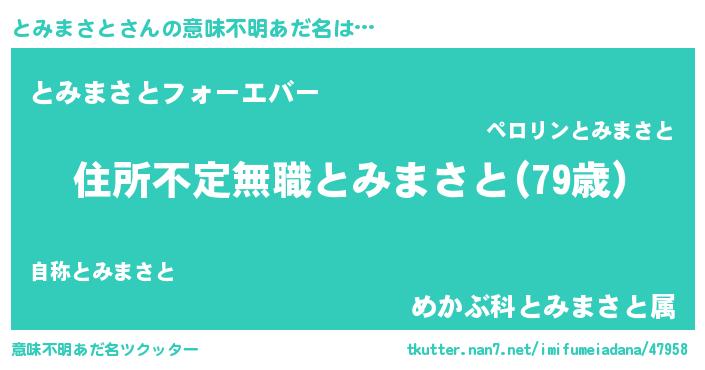 | ヒーロー風カッコイイあだ名 | 『仮面トミダー』『スーパートミマサト』 |