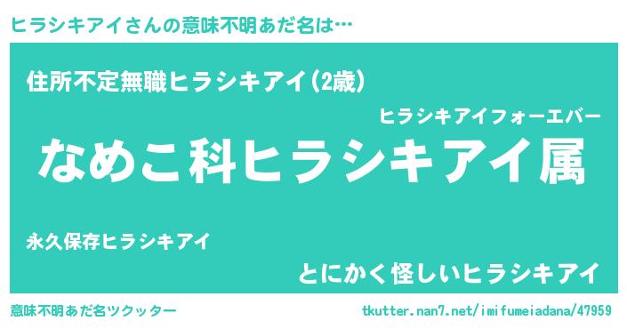 | 欧米人風あだ名 | 『トリンドルヒラシキアイ』 |