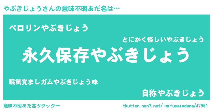 | ヘコむあだ名 | 『やぶきじょう(爆)』『やぶもー』 |