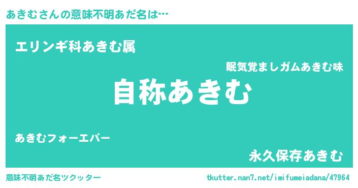 | ヘコむあだ名 | 『あきむ(苦笑)』『豆乳』『あきもー』 |
