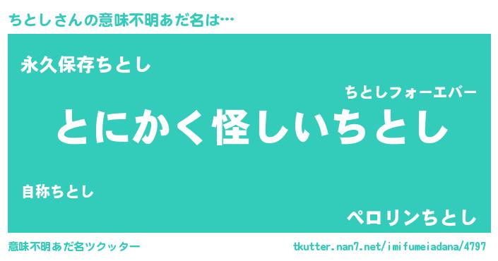 | 男性向けラノベタイトル風あだ名 | 『ダンジョンにちとしを求めるのは間違っているだろうか』 |
