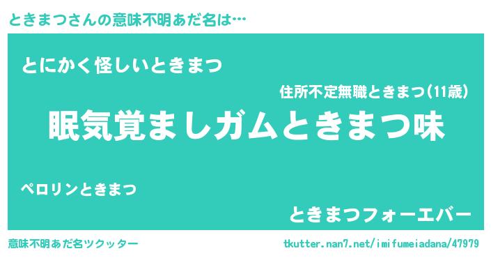 | ヒーロー風カッコイイあだ名 | 『慈愛の使者ときまつ』『黄金騎士トキ』 |