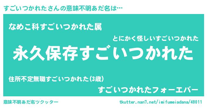 | 胡散臭い通販商品みたいなあだ名 | 『絶対に幸福をもたらす健康食品…その名も「すごいつかれた」』 |
