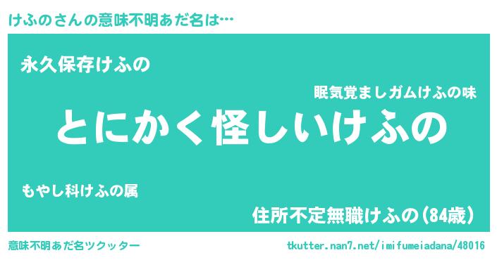 | 胡散臭い通販商品みたいなあだ名 | 『伝統あるサプリメント…その名も「けふの」』 |