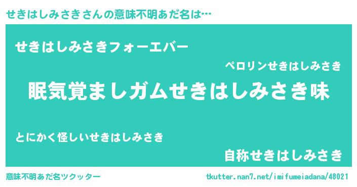 | 女子向けラノベタイトル風あだ名 | 『せきはしみさき夫妻のなれそめ』 |
