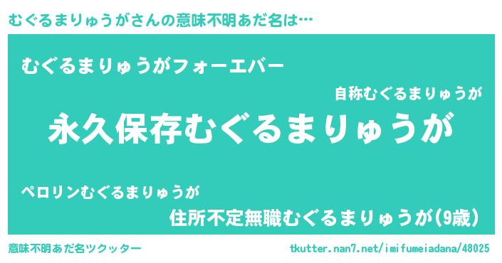 | 胡散臭い通販商品みたいなあだ名 | 『来世でも幸せになれる水素水…その名も「むぐるまりゅうが」』 |