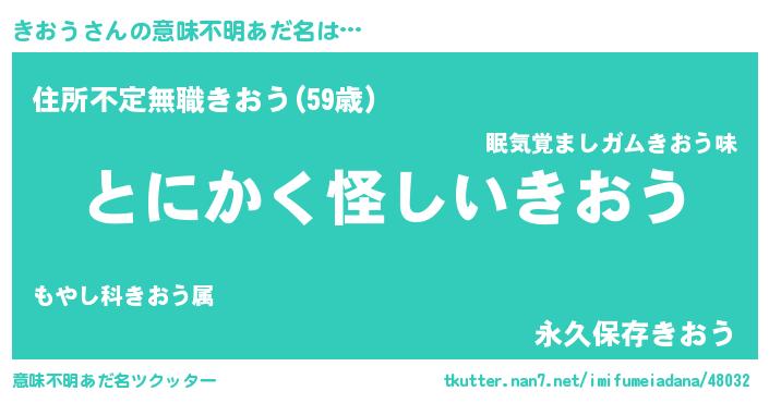 | 胡散臭い通販商品みたいなあだ名 | 『全米が絶賛したサプリメント…その名も「きおう」』 |