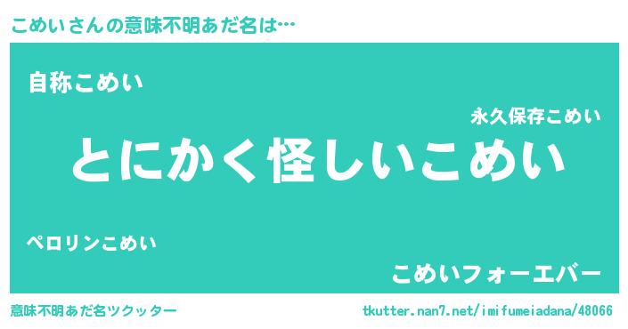 | 欧米人風あだ名 | 『こめい・ステッグマイヤー』 |