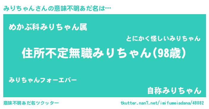 | 男性向けラノベタイトル風あだ名 | 『この素晴らしい世界にみりちゃんを!』 |