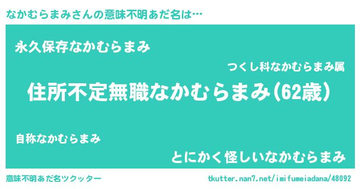 | 男性向けラノベタイトル風あだ名 | 『なかむらまみに滅ぼされるだけの簡単なお仕事です』 |