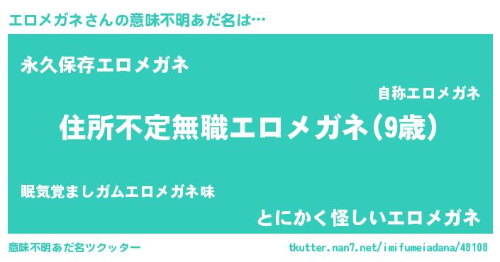| 胡散臭い通販商品みたいなあだ名 | 『あなたにだけ特別に提供する100年もののヴィンテージワイン…その名も「エロメガネ」』 |