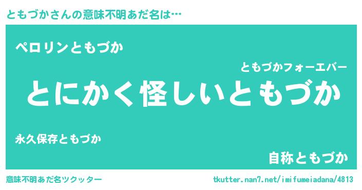 | 女子向けラノベタイトル風あだ名 | 『ともづかの卵を拾いまして』 |