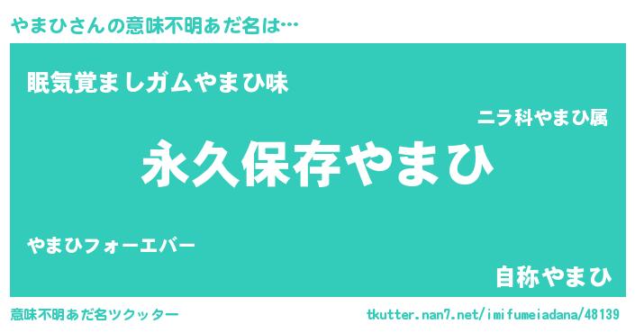 | ヒーロー風カッコイイあだ名 | 『ネオヤマヒ』『正義の使者やまひ』 |