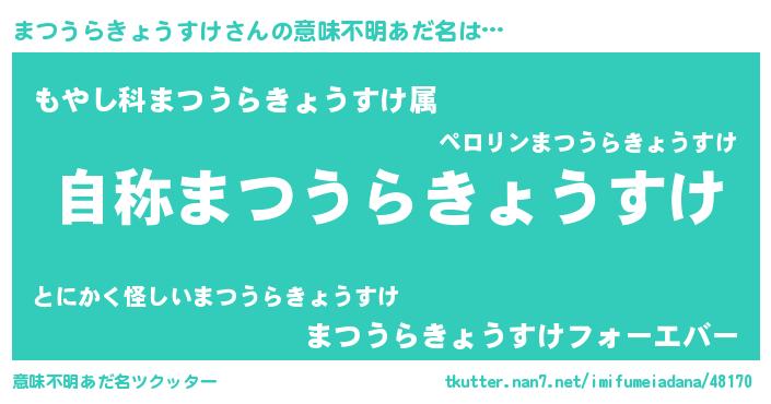 | 肩書あだ名 | 『まつうらきょうすけ総統』 |