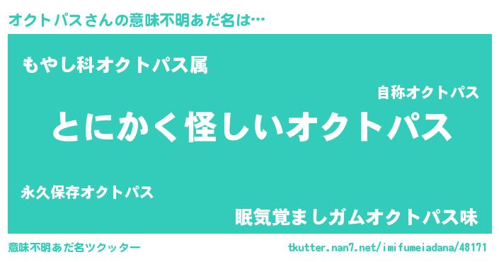 | 男性向けラノベタイトル風あだ名 | 『ダンジョンにオクトパスを求めるのは間違っているだろうか』 |