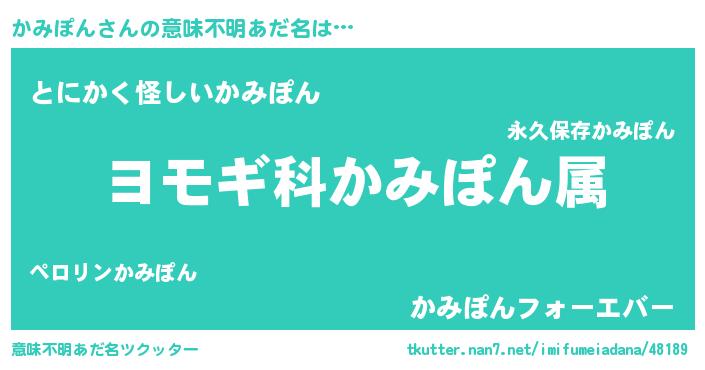 | 男性向けラノベタイトル風あだ名 | 『かみぽん~年齢イコール彼女いない歴の魔法使い~』 |