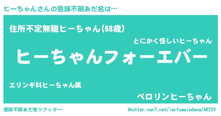 | ファンタジー風あだ名 | 『エターナルヒーチャンー』『ヒーフェル』 |
