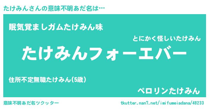 | 欧米人風あだ名 | 『たけみんクリステル』 |