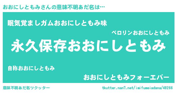 | ヘコむあだ名 | 『おおにしともみ(笑)』『つくし』 |