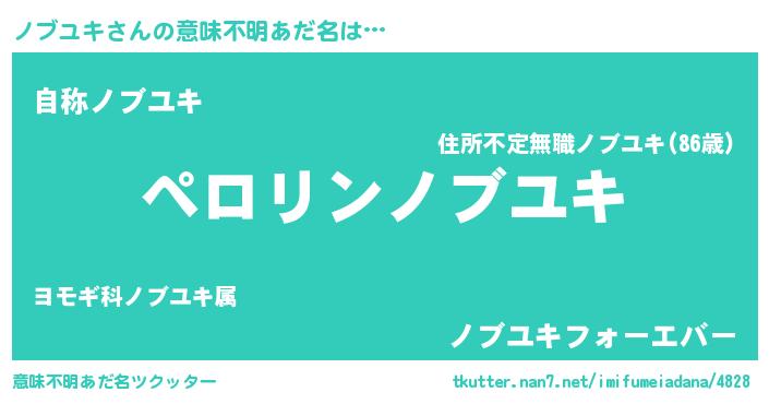 | 胡散臭い通販商品みたいなあだ名 | 『必ず成功する霊験あらたかなお札…その名も「ノブユキ」』 |