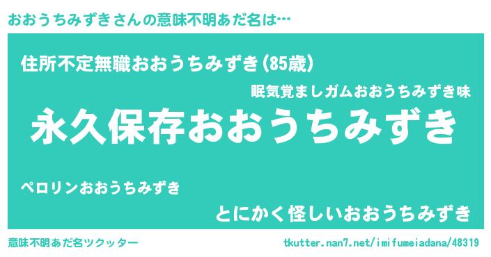 ヘコむあだ名 | 『おおうちみずき(笑)』『おおっちょ』 |