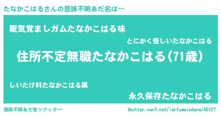 | 男性向けラノベタイトル風あだ名 | 『この素晴らしい世界にたなかこはるを!』 |