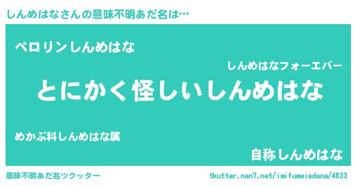 | ポケモン風あだ名 | 『ヒシンメハナ』『シンチュウ』 |