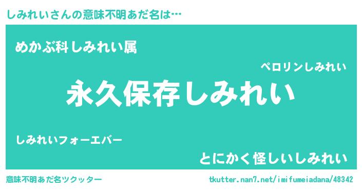 | ヘコむあだ名 | 『しみれい(笑)』『しみっぺ』 |