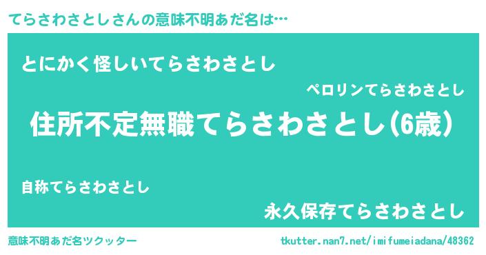 | ヘコむあだ名 | 『てらを』『てらさわさとし(遠い目)』 |
