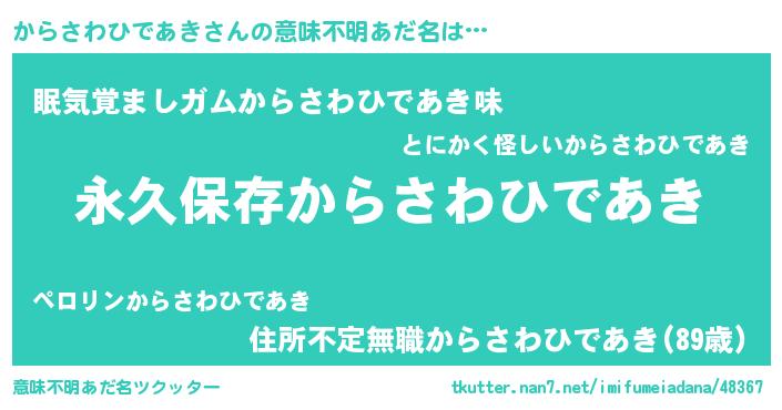 | ヘコむあだ名 | 『からさわひであき(笑)』『からぷりん』 |