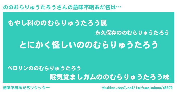 | 女子向けラノベタイトル風あだ名 | 『ののむらりゅうたろうは平凡を望む』 |