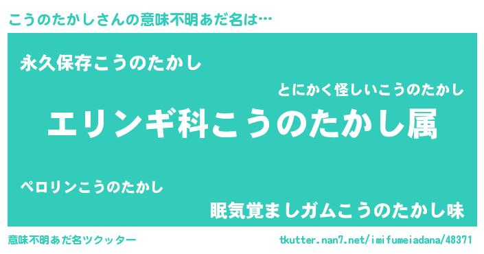 | 胡散臭い通販商品みたいなあだ名 | 『絶対に幸福をもたらす水素水…その名も「こうのたかし」』 |