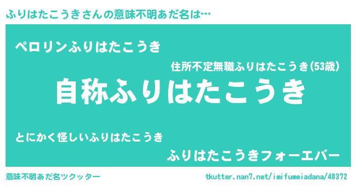 | 女子向けラノベタイトル風あだ名 | 『ふりはたこうきなんてお断りですっ。』 |