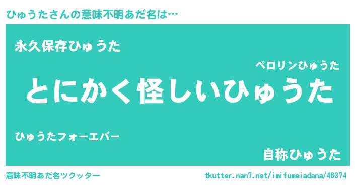 | ヘコむあだ名 | 『ひゅお』『ひゅうた(遠い目)』 |